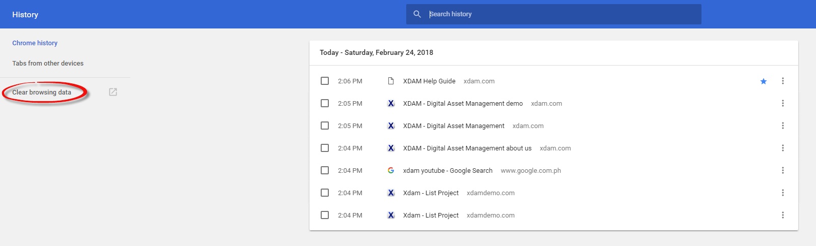1.b Choose History>Show History, select history entries and daily sets of entries, then press Delete.