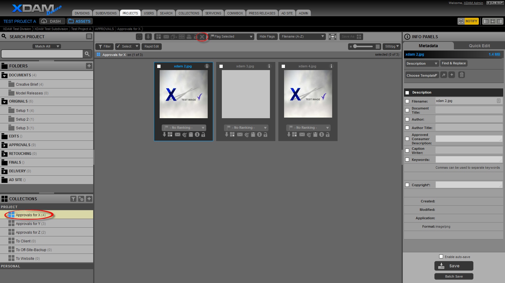 B. If a Collection is selected, click the X icon to remove an asset(s) in a Collection.