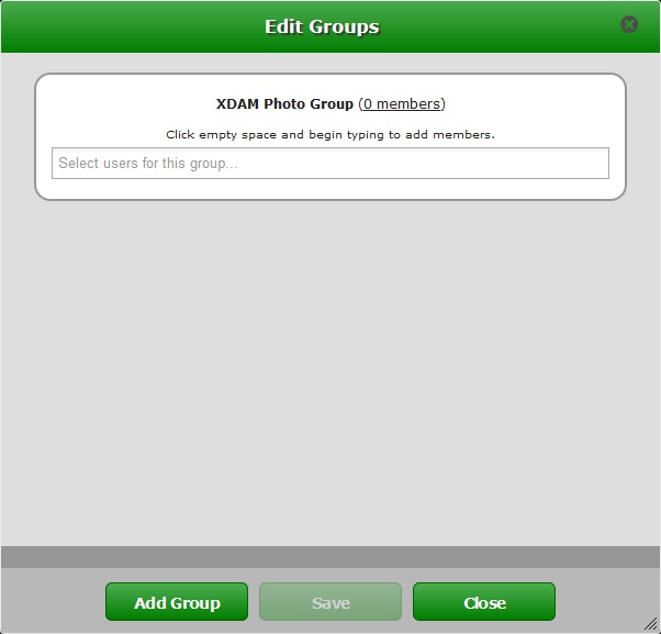 Groups in XDAM allows a User to share a selection of assets to one or more Users which are part of a predefined “Group” within the system. Personal collection which are being shared with you will show up in the Collection Panel under a Group sub-section.