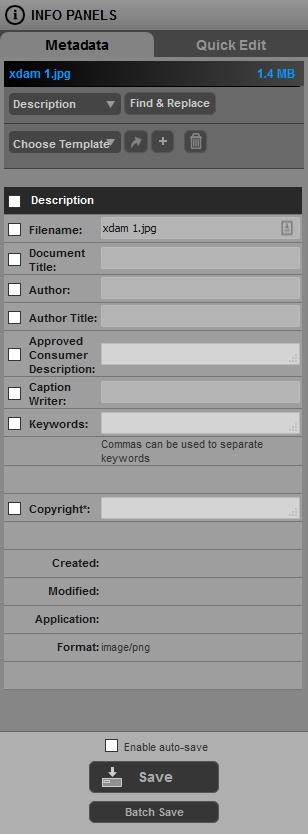 The Information Panel comprises of two tabs; Metadata and Quick Edit.