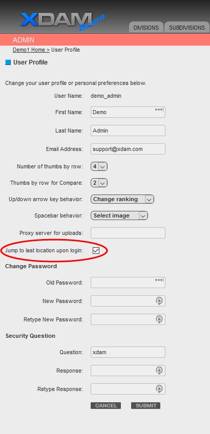 Check the box "Jump to last location upon login:" box and hit Submit.