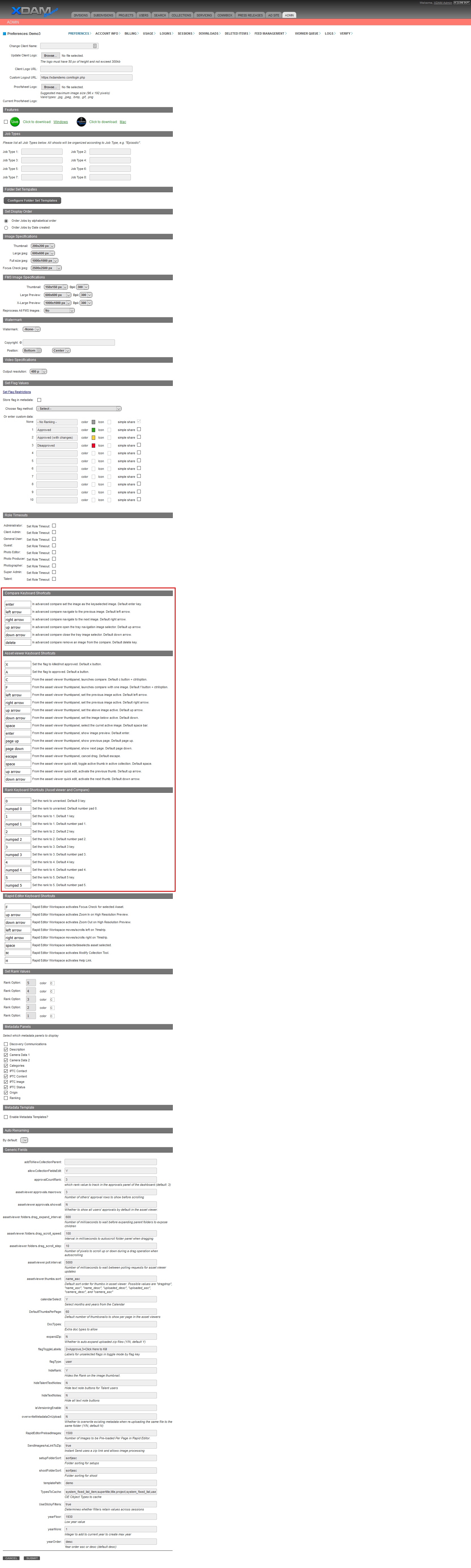 In the Admin Tab landing page, the Admin can customize the XDAM's keyboard shortcuts. The Admin has the option to change the following: