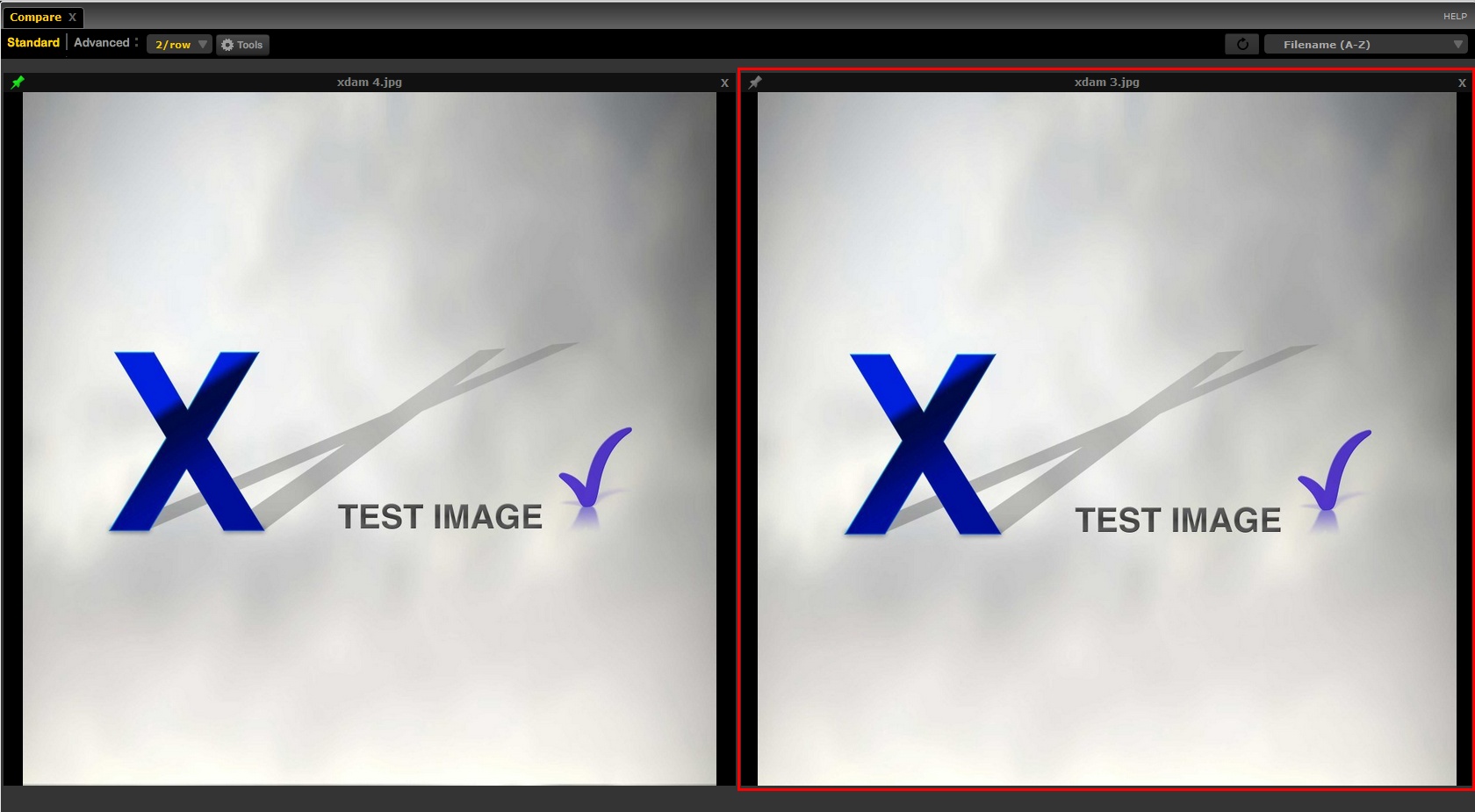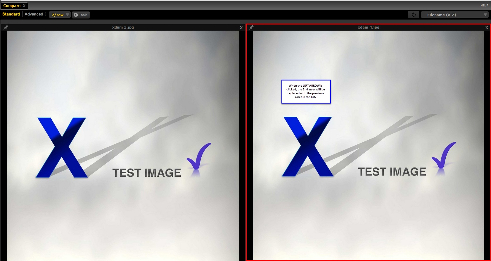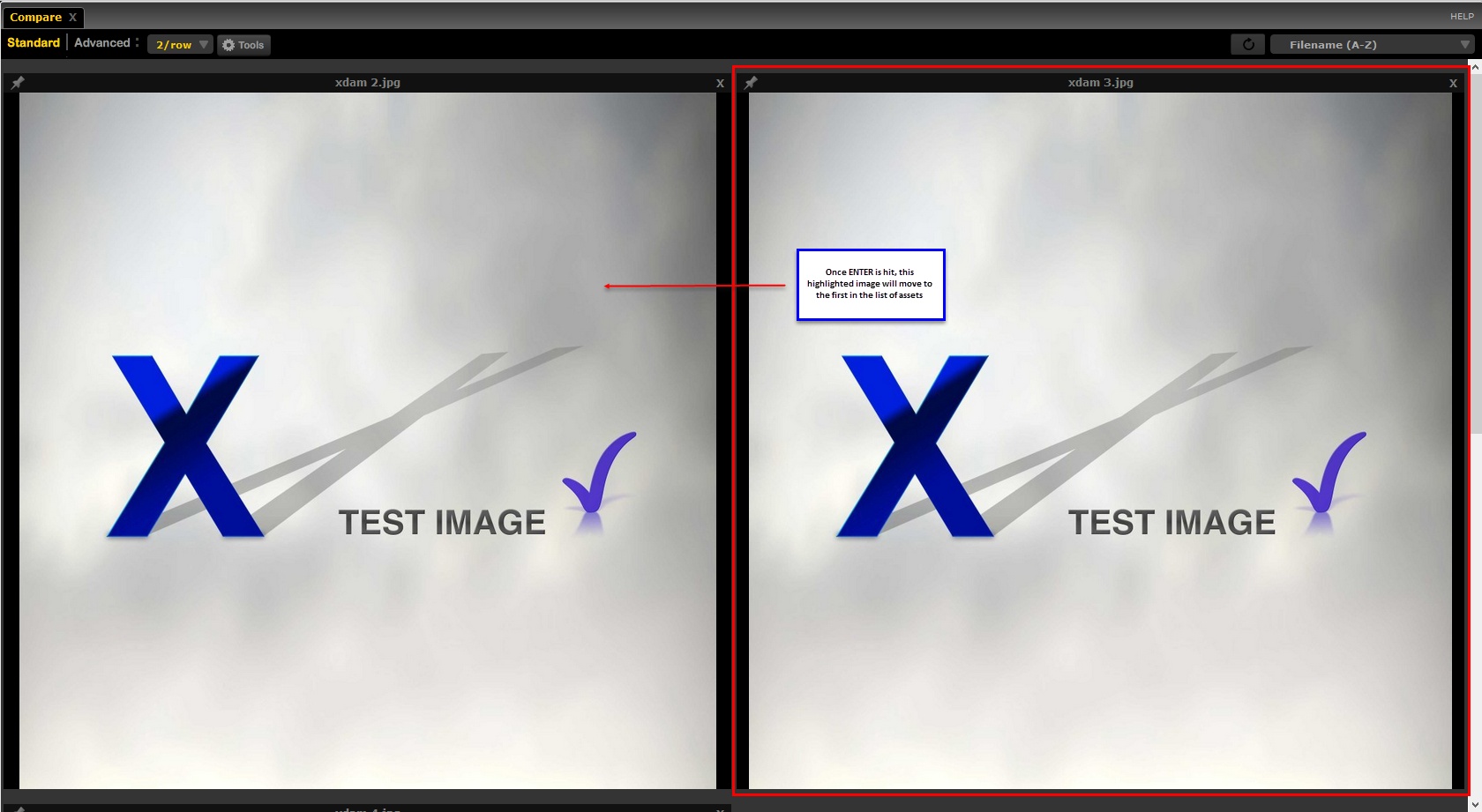 The DELETE key will remove the asset in you Advanced Compare selection. Note that there are only two assets in our selection after the DELETE procedure.