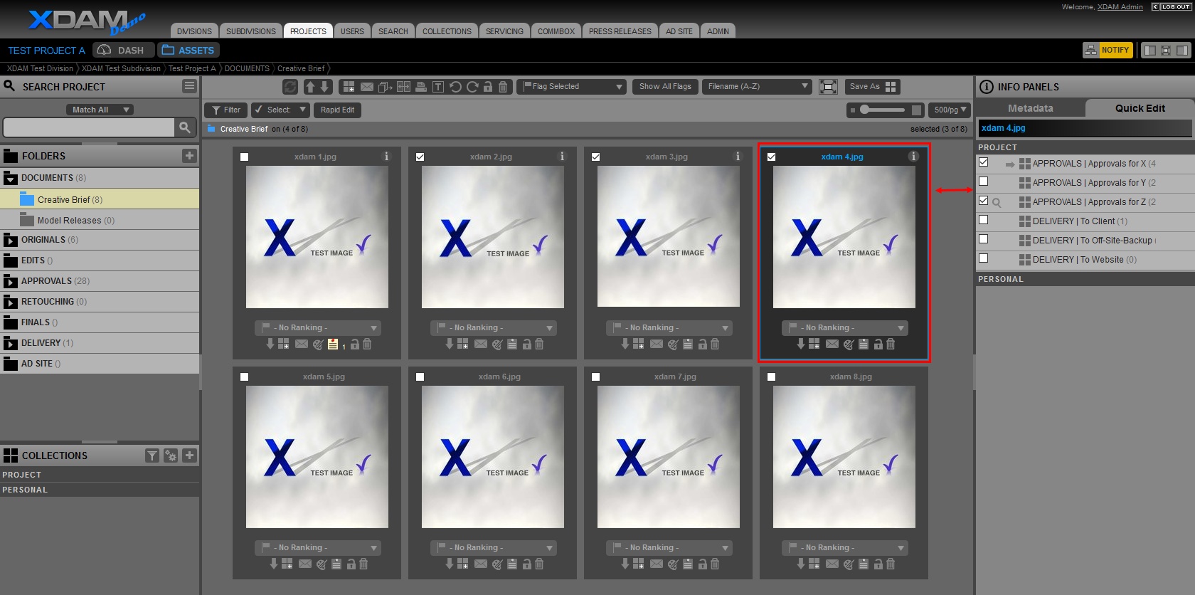 | • | If an asset is already inside a collection, the quick edit panel will show you the check mark indicator as seen in the below screenshot. |