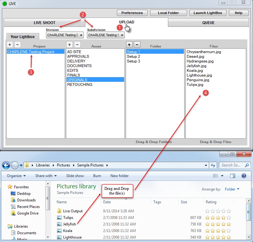 | 4. | Drag and Drop a file(s) and folder(s) from any location on your computer to the Files window. |