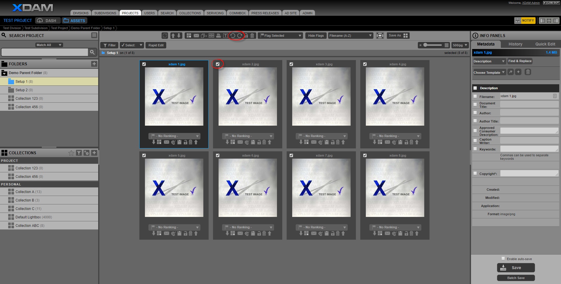 The Rotate left or right function allows you to change the orientation of your asset(s).