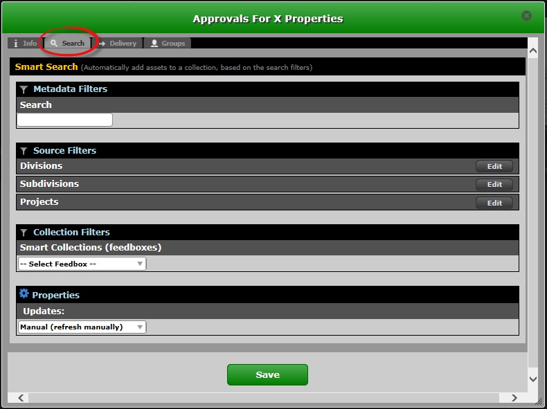 | • | Source Filters - This feature narrows or widens your search by selecting the Division, Subdivision and Projects |