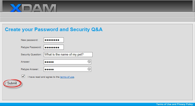 | 2. | Fill in the Security Question and supply the Answer, confirm in the Retype Answer field. |