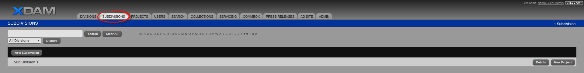Subdivision tab is the 2nd highest level of your company that sits under the parent network or division.