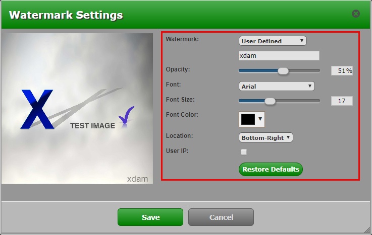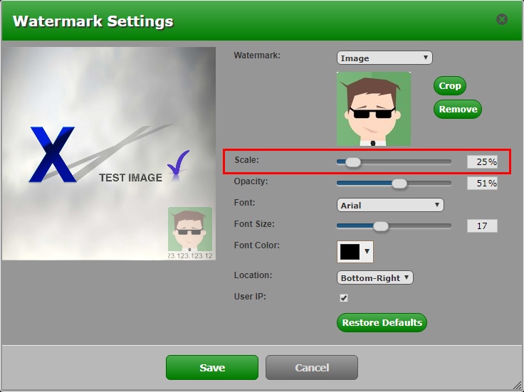 G. User IP (When checked, will add the IP Address along side the selected watermark.)