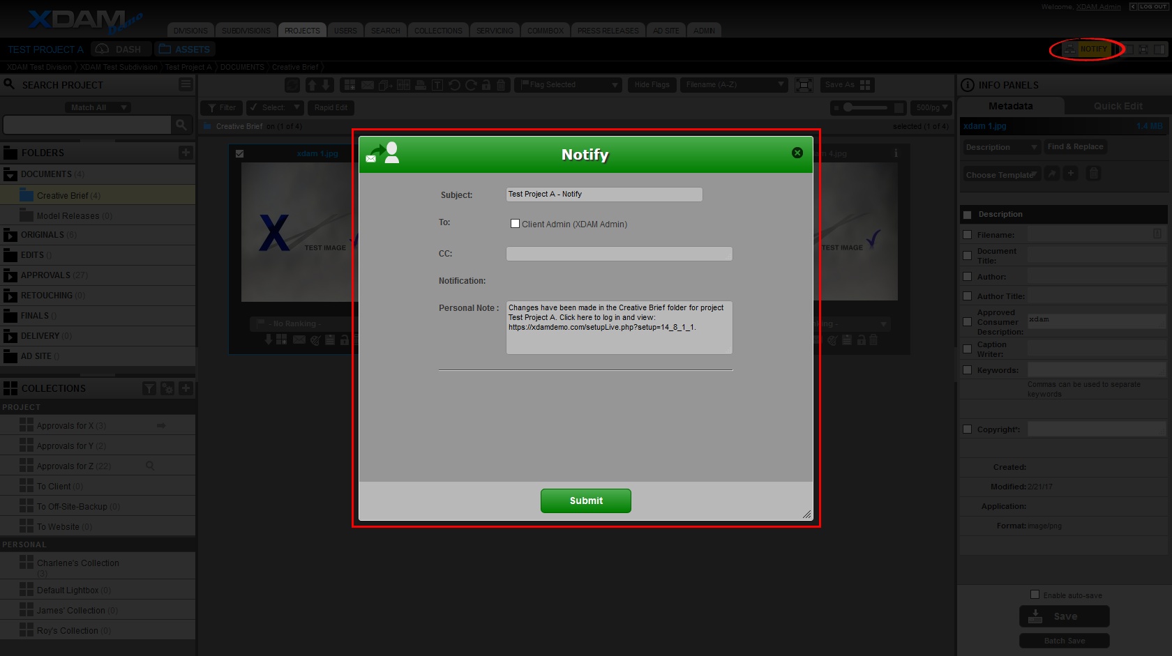 The Workflow button allows you to Contact/Notify other Users assigned to a certain project.